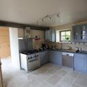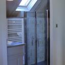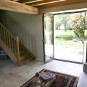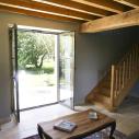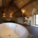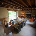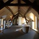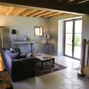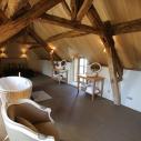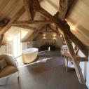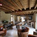 Ambiance campagne cosy avec son parquet de chêne naturel, le travertin et sa charpente ancienne.